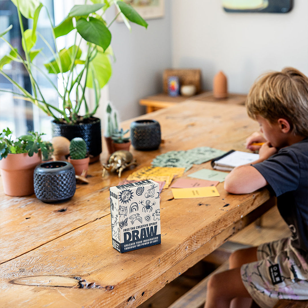 DRAW was created to spark wonder, curiosity, wild imagination, and authentic expression through art, no matter your age or experience. It all began with the question from my children: “What should I draw?” Which became the seed for a tool designed to nurture confidence in the creative process